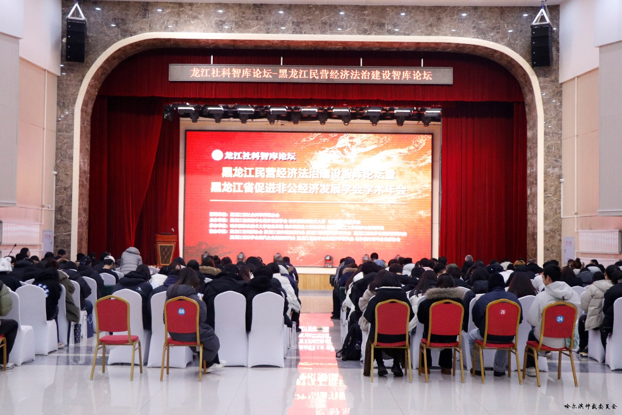 2025年12月13日,龙江社科智库论坛—黑龙江民营经济法治建设智库论坛暨黑龙江省促进非公经济发展学会学术年会在哈尔滨职业技术大学隆重举办。本次会议由省社科联指导,省促进非公经济发展学会、哈尔滨职业技术大学、哈尔滨仲裁委员会联合主办,哈尔滨职业技术大学创业学院、哈尔滨商业大学法学院、哈尔滨理工大学经济与管理学院承办以及多家单位协办。来自全省政界、学界、企业界、法律界各界代表人士共计300多人参加会议。省社科联副主席、党组成员曹妍,省人大常委会法工委副主任杨立峰、省政协文史委副主任李岩,哈尔滨职业技术大学党委副书记、校长刘建国等出席会议。会议由省促进非公经济发展学会常务副会长兼秘书长姚勇民主持。